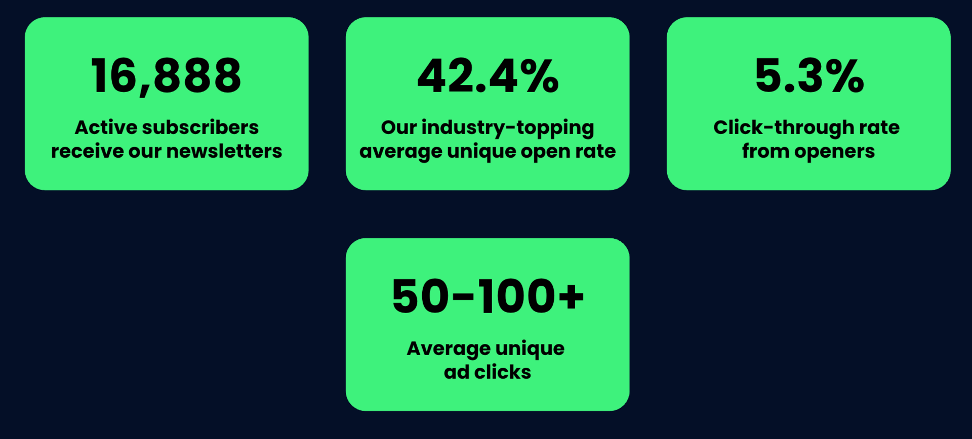 In addition to the growing newsletter readers, we also have 55,000+ followers on LinkedIn, making us an ideal partner to help drive your message to your target audience on LinkedIn at scale.