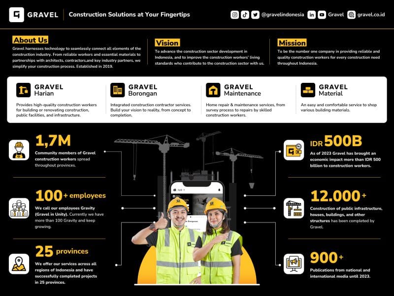 🇮🇩 Founded in 2019 in Indonesia by 3 friends (Georgi Ferdwindra Putra, Fredy Yanto, and Nicholas Sutardja), Gravel was a digital platform to integrate and streamline the construction supply chain and workforce.